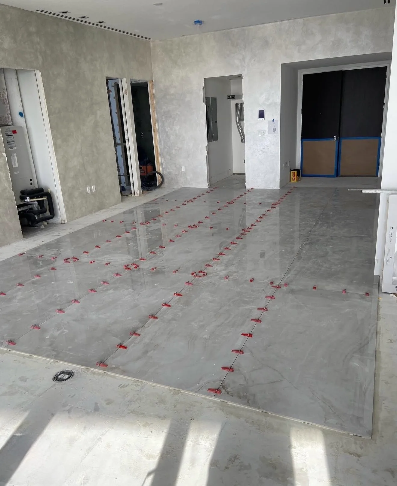 The design approach focused on contemporary coastal minimalism — clean lines, warm neutrals, natural textures, and seamless indoor-outdoor flow. Large-format flooring and custom cabinetry created visual continuity, while curated lighting enhanced depth and architectural character.